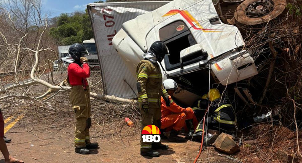 Mãe e filha de três anos ficam presas às ferragens após caminhão tombar no interior do Piauí.