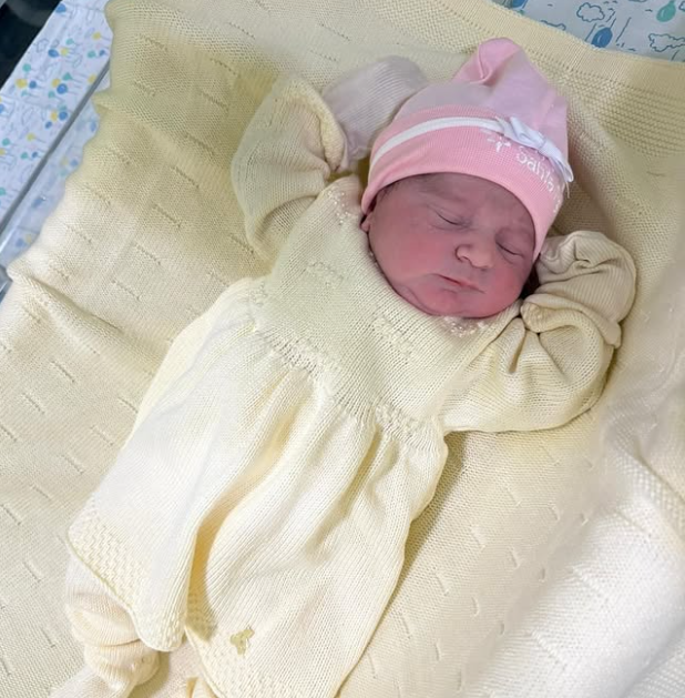 A bebê aparece vestida com um conjunto amarelo e um gorro rosa, recebendo uma enxurrada de mensagens de carinho e felicitações de amigos, familiares e seguidores.